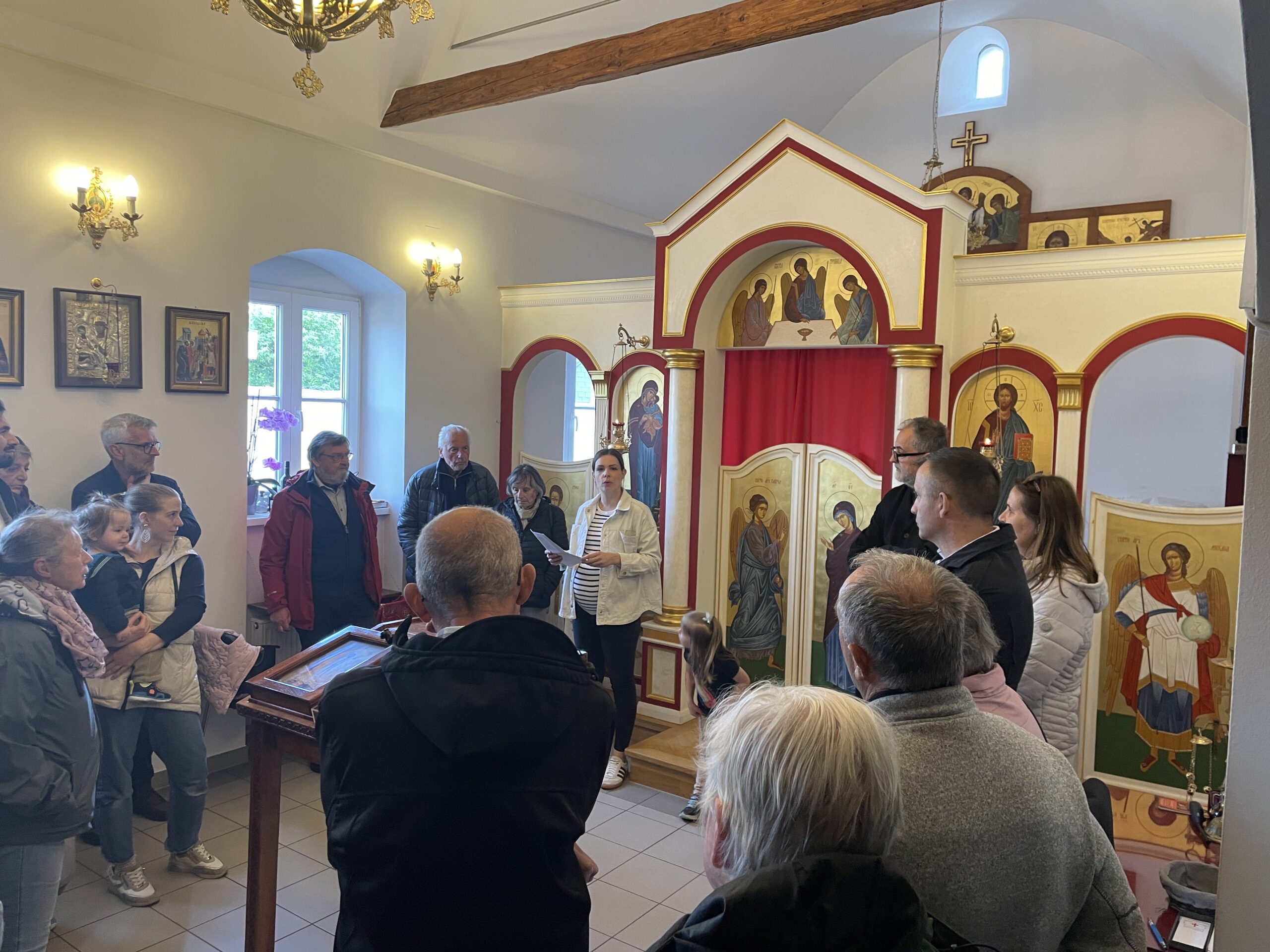 Anschließend an die 5 Stationen brachte der Tulli die rund 50 Teilnehmer:innen zurück ins Rathaus, wo bei einem Ausklang mit Brötchen und Getränken noch viele angeregte Gespräche geführt wurden. Dabei erfuhren wir, dass fast die Hälfte der Teilnehmer:innen zum ersten Mal dabei waren und auch viele von außerhalb Tullns kamen. Einige nutzten die Gelegenheit, um erstmals eine Moschee zu betreten und für so manche war es auch überraschend, dass es in Tulln eine serbisch-orthodoxe Kirche gibt.