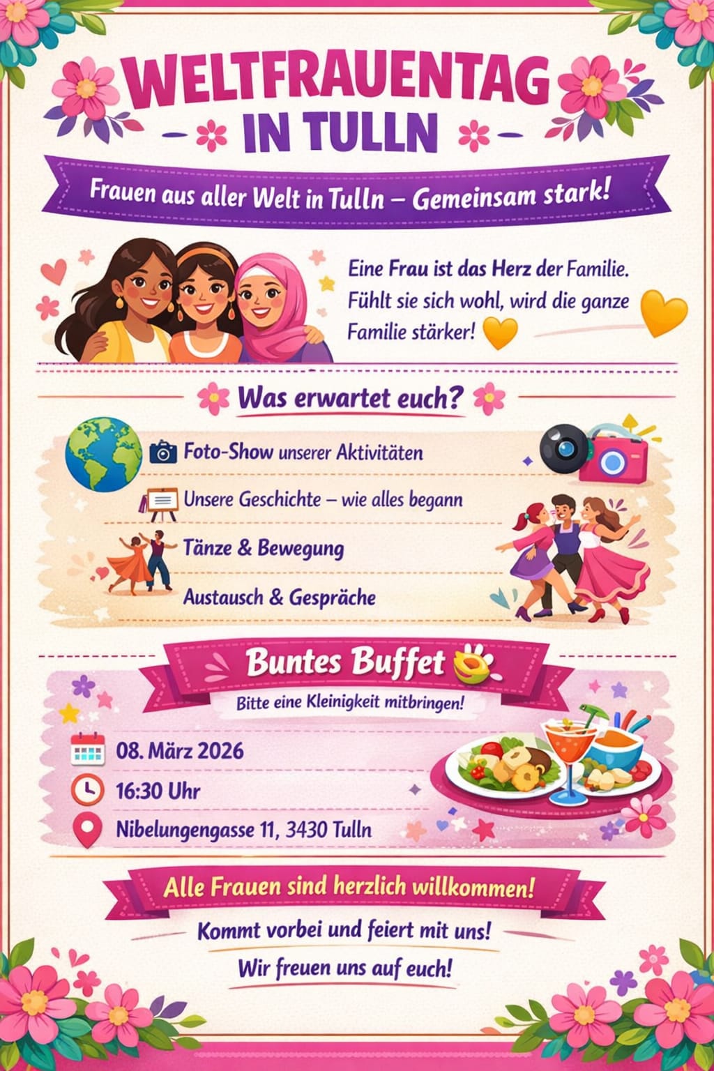 Zum Internationalen Weltfrauentag laden wir herzlich alle Frauen aus Tulln und Umgebung zu einem besonderen Treffen unserer Gemeinschaft ein!