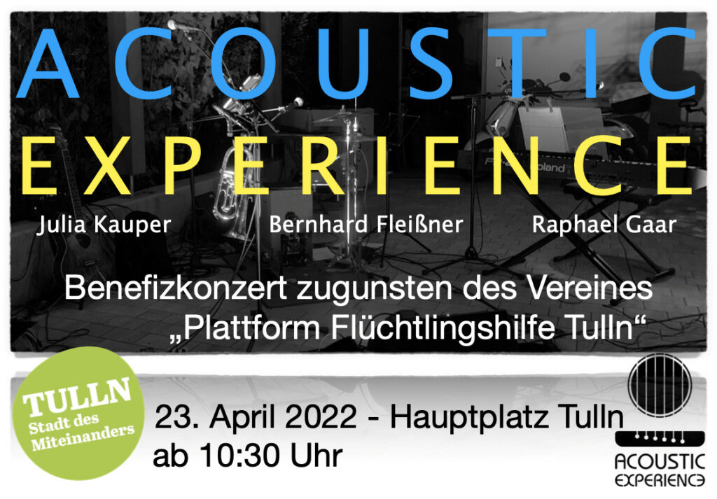 Benefizkonzert am Tullner Hauptplatz mit der Band „Acoustic Experience“ zu Gunsten des Vereins „Plattform Flüchtlingshilfe Tulln“.