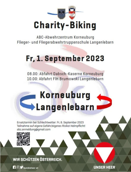 Das ABC-Abwehrzentrum Korneuburg und die Flieger- und Fliegerabwehrtruppenschule Langenlebarn laden am Freitag, den 1. September, zum Charity-Biking ein.