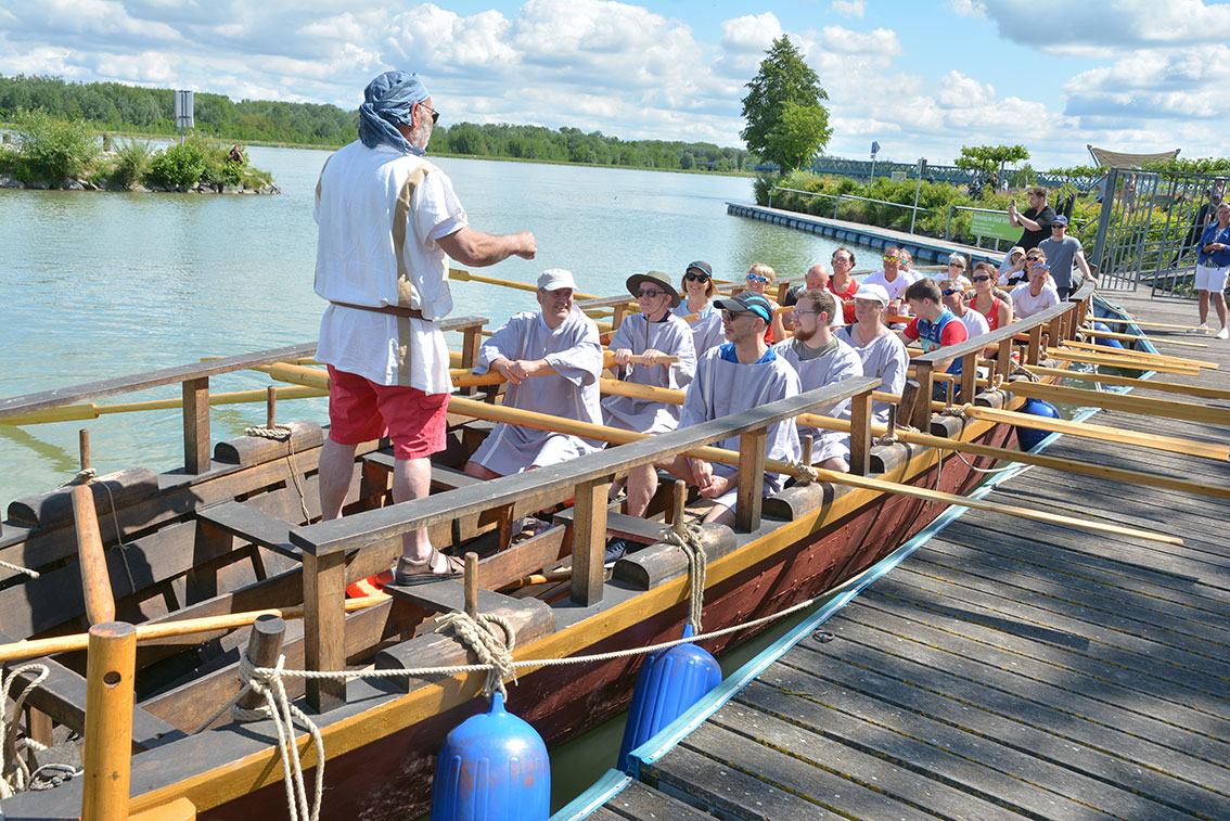 Bei einer exklusiven Führung rund um das originalgetreu nachgebaute spätantike römische Patrouillenboot „Danuvina Alacris“ tauchst du ein in die faszinierende Welt der römischen Flussschifffahrt. Du erfährst alles Wissenswerte über den Flottenstützpunkt an der Donau, der vor 2000 Jahren zum Römerlager Comagenis gehörte.