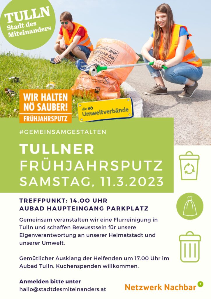 Wir treffen uns am 11.3.2023 um 14.00 Uhr zum Tullner Frühjahrsputz.