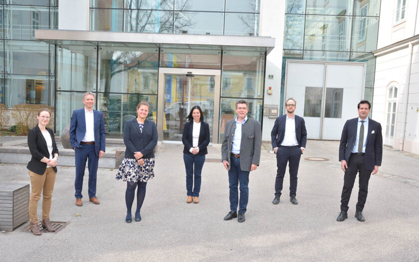 Zu sehen sind die Anwält*innen, die die Sprechstunde betreuen, sowie der Bürgermeister der Stadt Tulln.