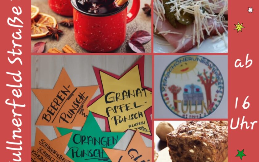 Der Verschönerungsverein Tulln lädt recht herzlich am Samstag, den 16.12.2023 ab 16.00 Uhr zum Punschstand nach Staasdorf ein. Für das leibliche Wohl wird gesorgt. Ab 17.00 Uhr gibts außerdem eine musikalische Begleitung.