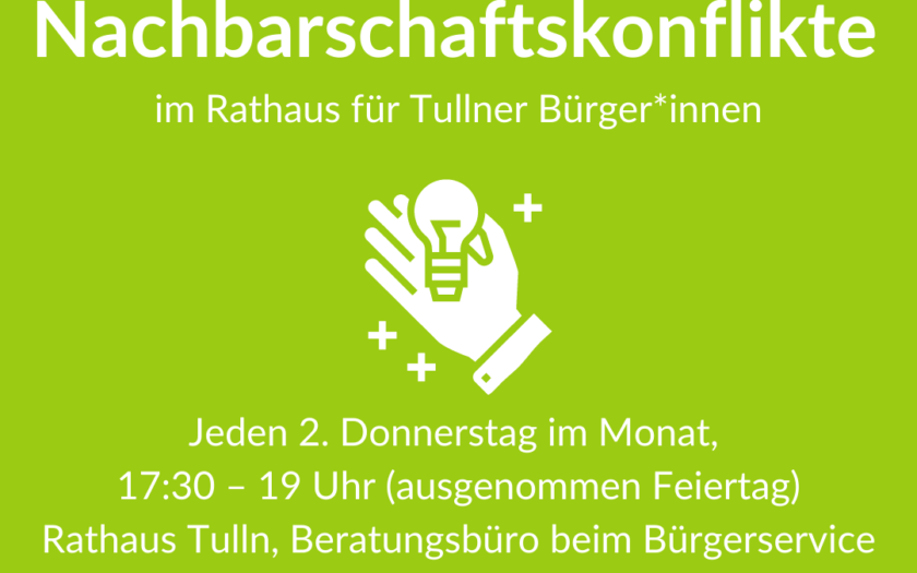 Miteinander gelingt nicht immer. Konflikte sind normal und lassen sich sehr oft einvernehmlich lösen. Als Hilfestellung gibt es eine monatliche Sprechstunde im Tullner Rathaus. Unsere ehrenamtlichen Expertinnen verstehen Konflikte und kennen die Rechtslage genau. Sie …