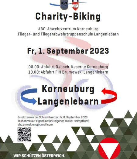 Das ABC-Abwehrzentrum Korneuburg und die Flieger- und Fliegerabwehrtruppenschule Langenlebarn laden am Freitag, den 1. September, zum Charity-Biking ein. Abfahrt in Korneuburg ist um 08:00 Uhr, Treffpunkt ab 07:30 Uhr bei der DABSCH-Kaserne Korneuburg. Abfahrt in …