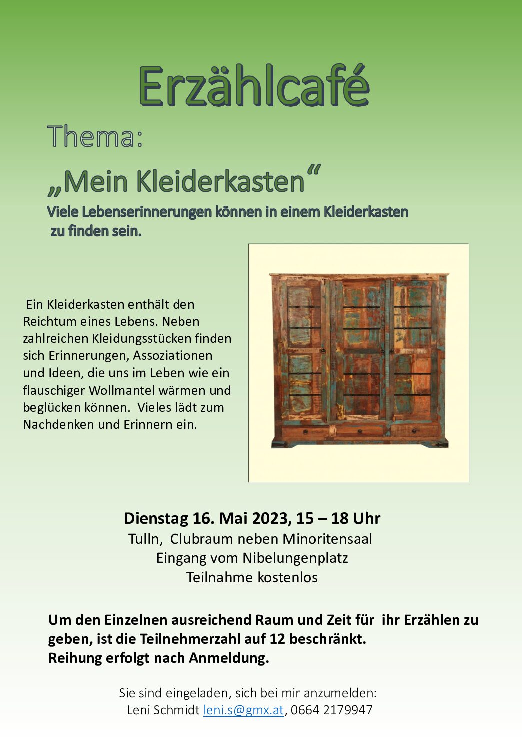 Das ist die Möglichkeit, deinen Kleiderschrank auszumisten und anderen mit deiner nicht mehr getragenen Kleidung Freude zu bereiten! Während des Kleidertausches wird es auch die Möglichkeit geben, sich bei Kaffee und Kuchen miteinander auszutauschen.